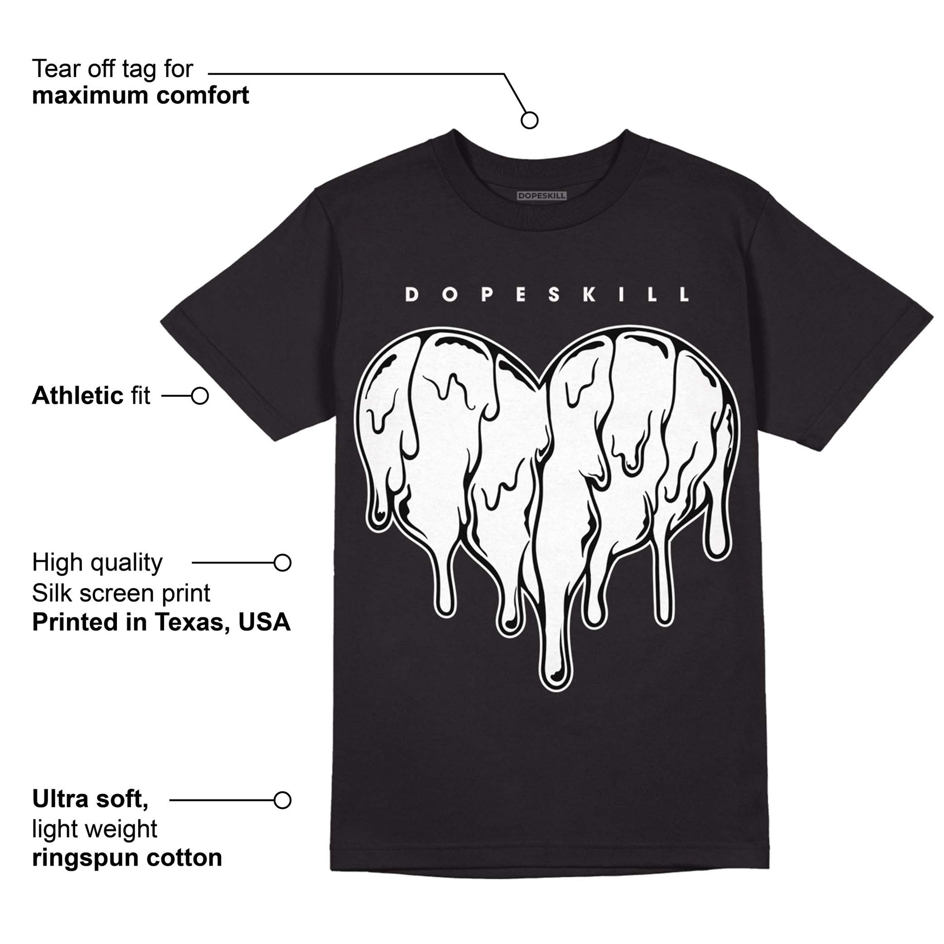 85 Black White 1s DopeSkill T-Shirt Slime Drip Heart Graphic