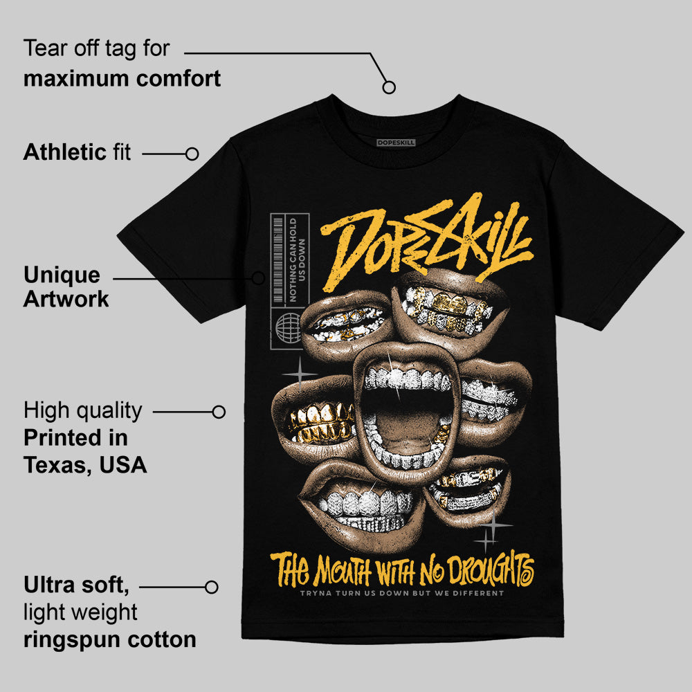 9060 Varsity Gold DopeSkill T-Shirt The Mouth With No Droughts Graphic