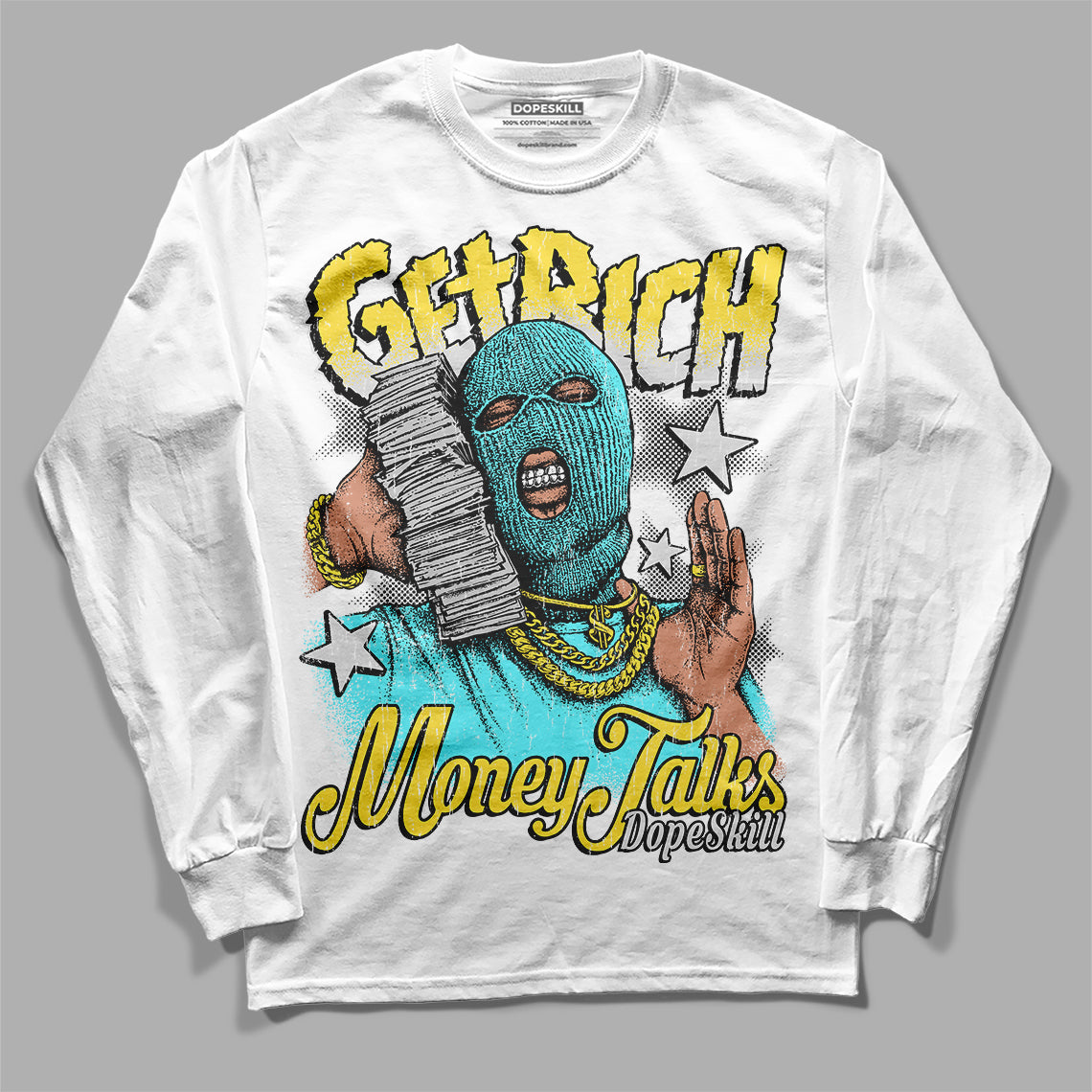 Aqua 5s DopeSkill Long Sleeve T-Shirt Get Rich Graphic