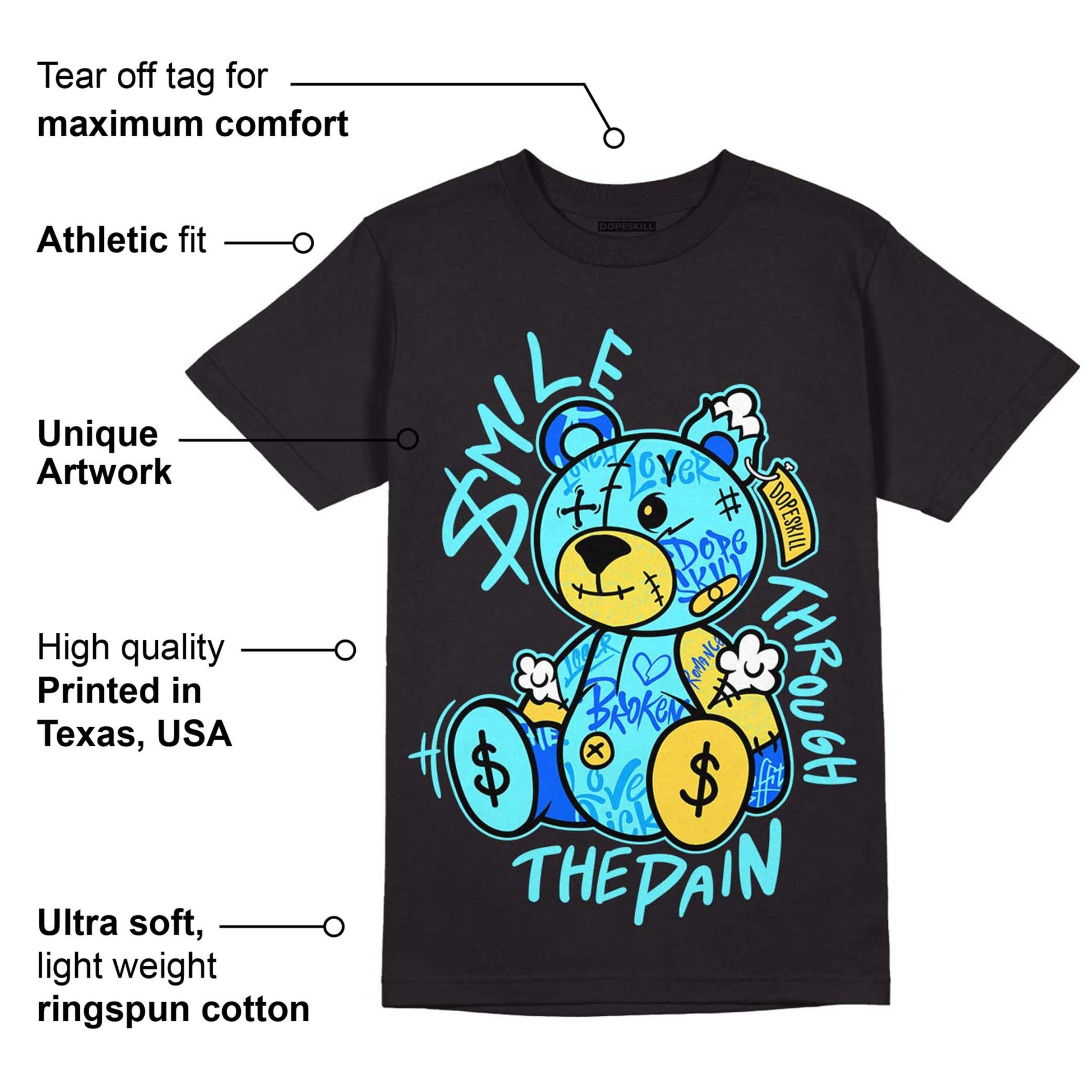 Aqua 5s DopeSkill T-Shirt Smile Through The Pain Graphic
