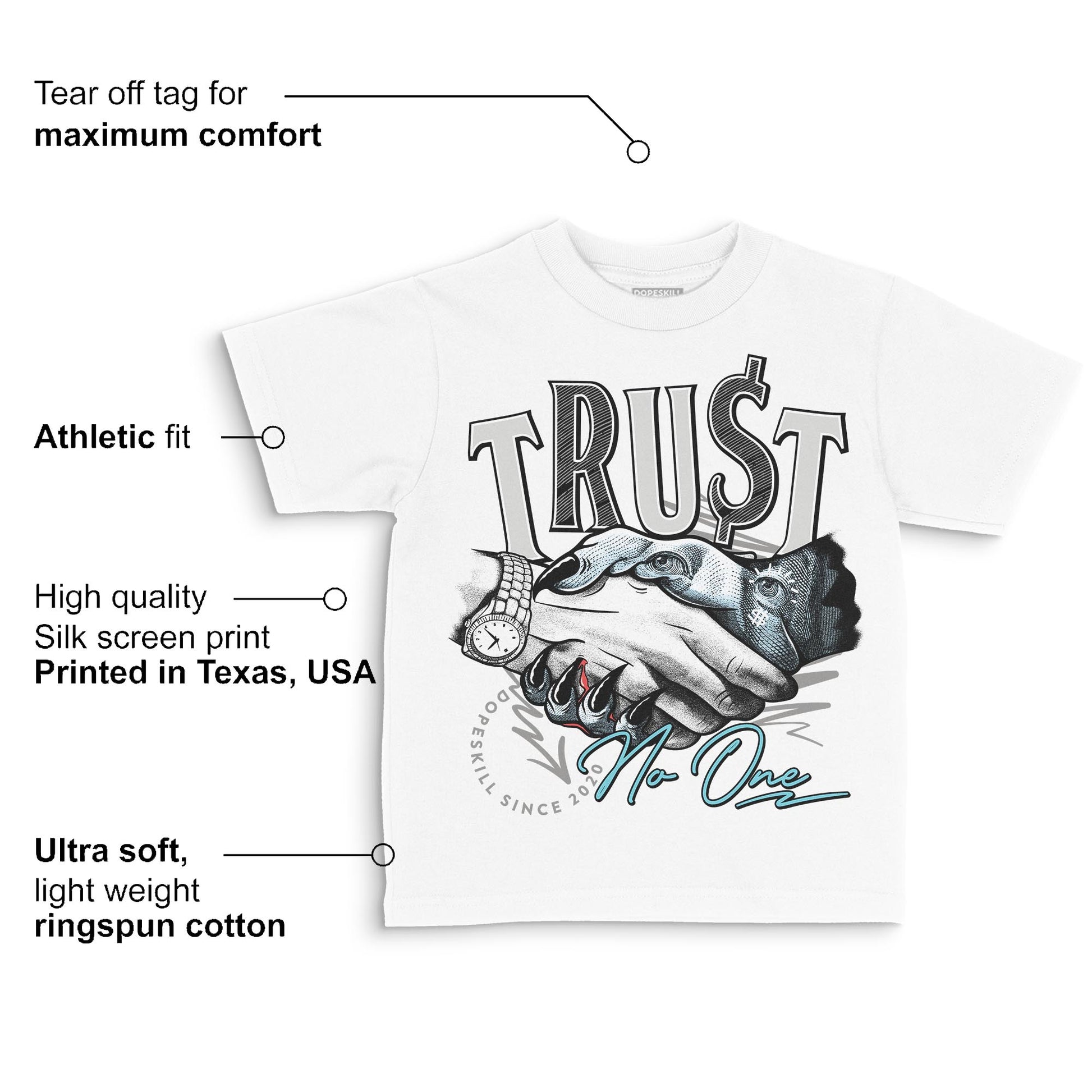 Blue Chill 4s DopeSkill Toddler Kids T-shirt Trust No One Graphic