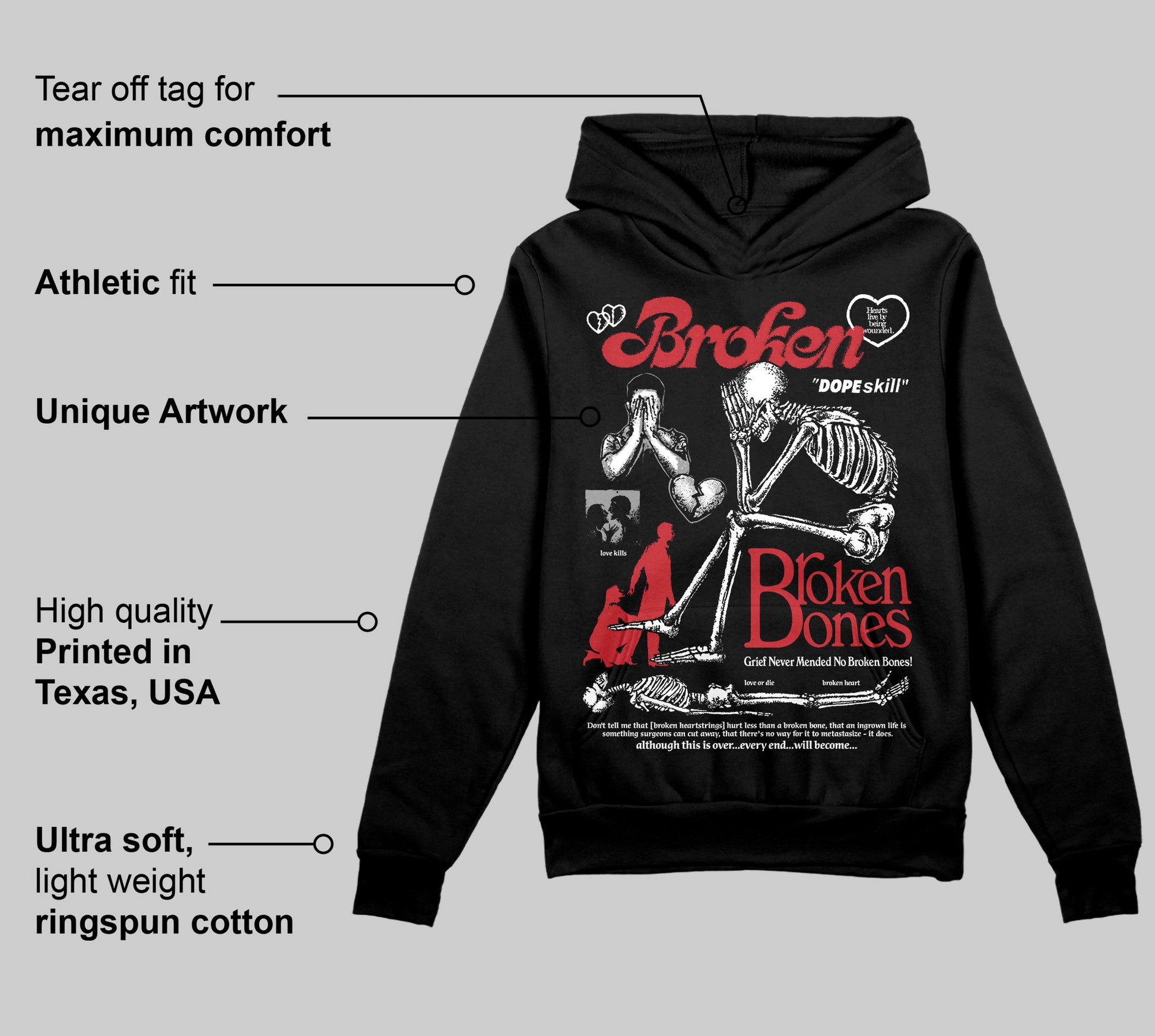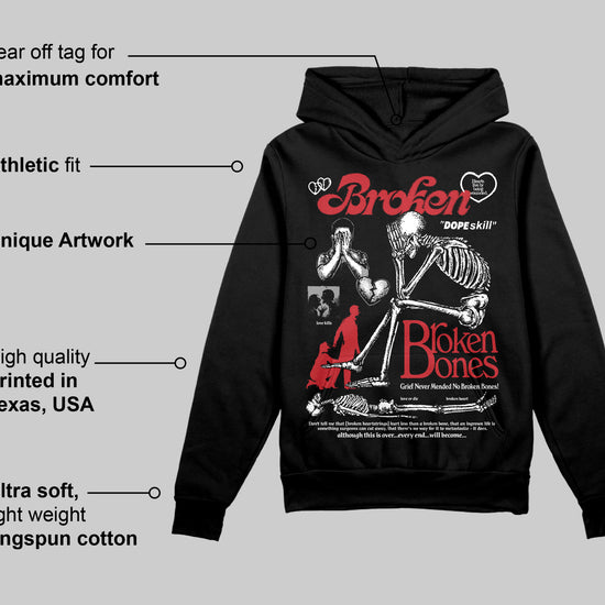 Bred Velvet 11s DopeSkill Hoodie Sweatshirt Broken Bones Graphic