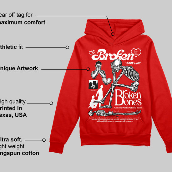 Bred Velvet 11s DopeSkill Red Hoodie Sweatshirt Broken Bones Graphic