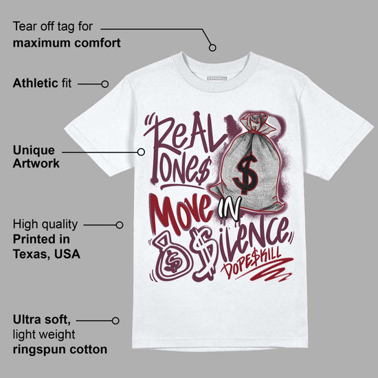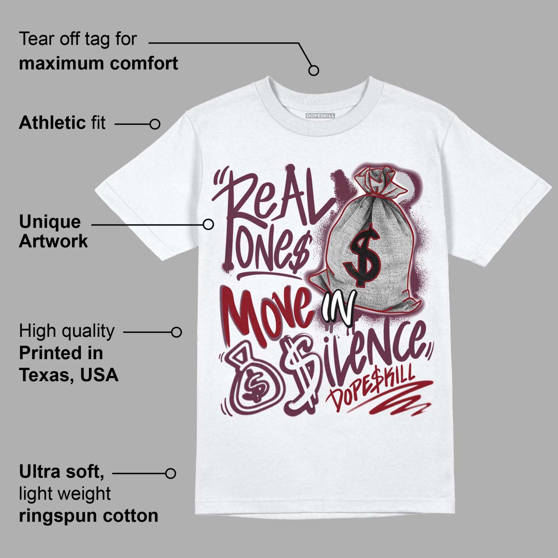 Burgundy 5s DopeSkill T-Shirt Real Ones Move In Silence Graphic