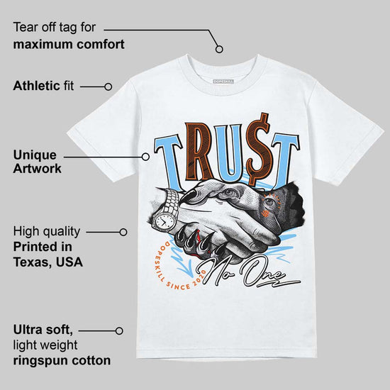 Dunk Low Futura University Blue DopeSkill T-Shirt Trust No One Graphic