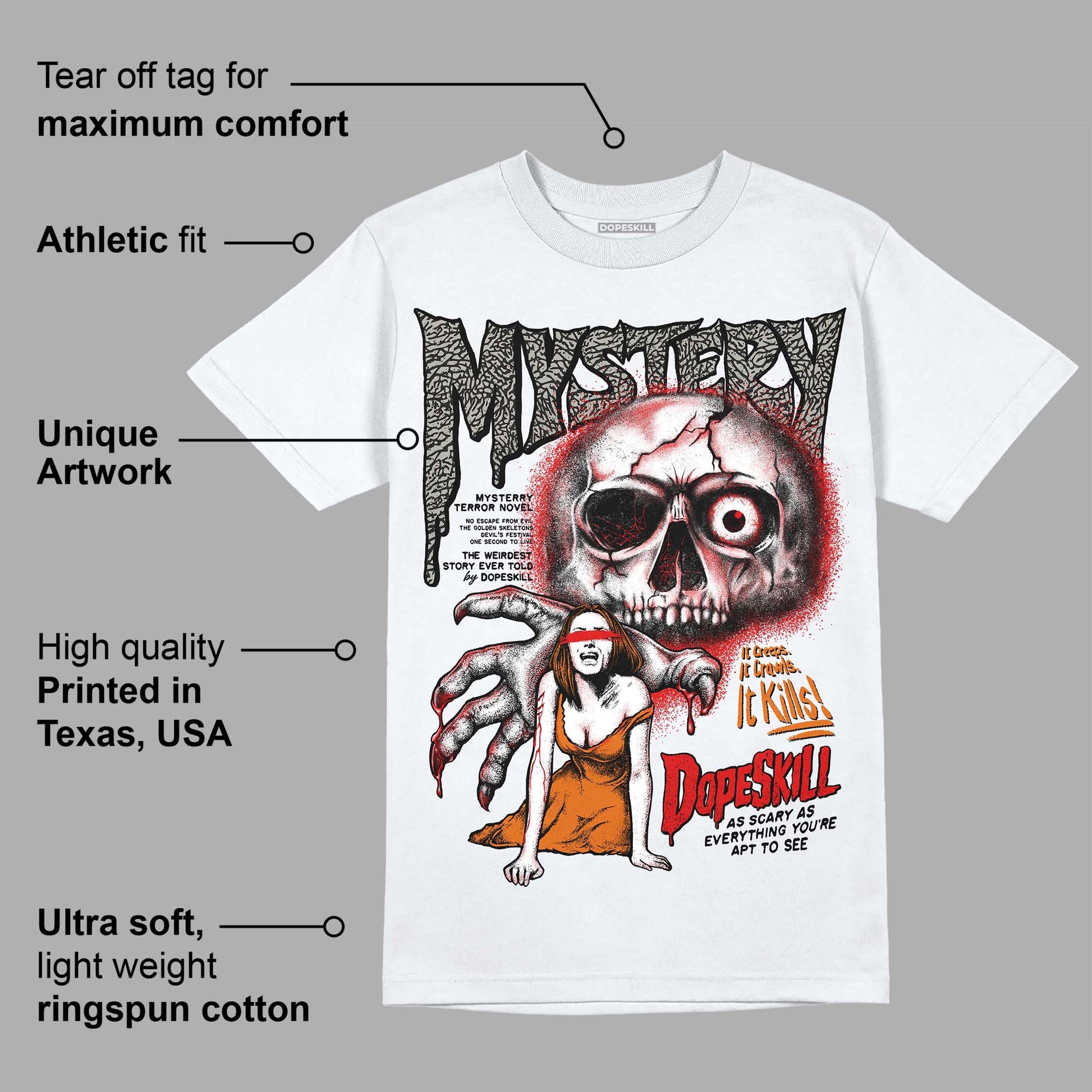 Fire Red 3s DopeSkill T-Shirt Mystery Ghostly Grasp Graphic