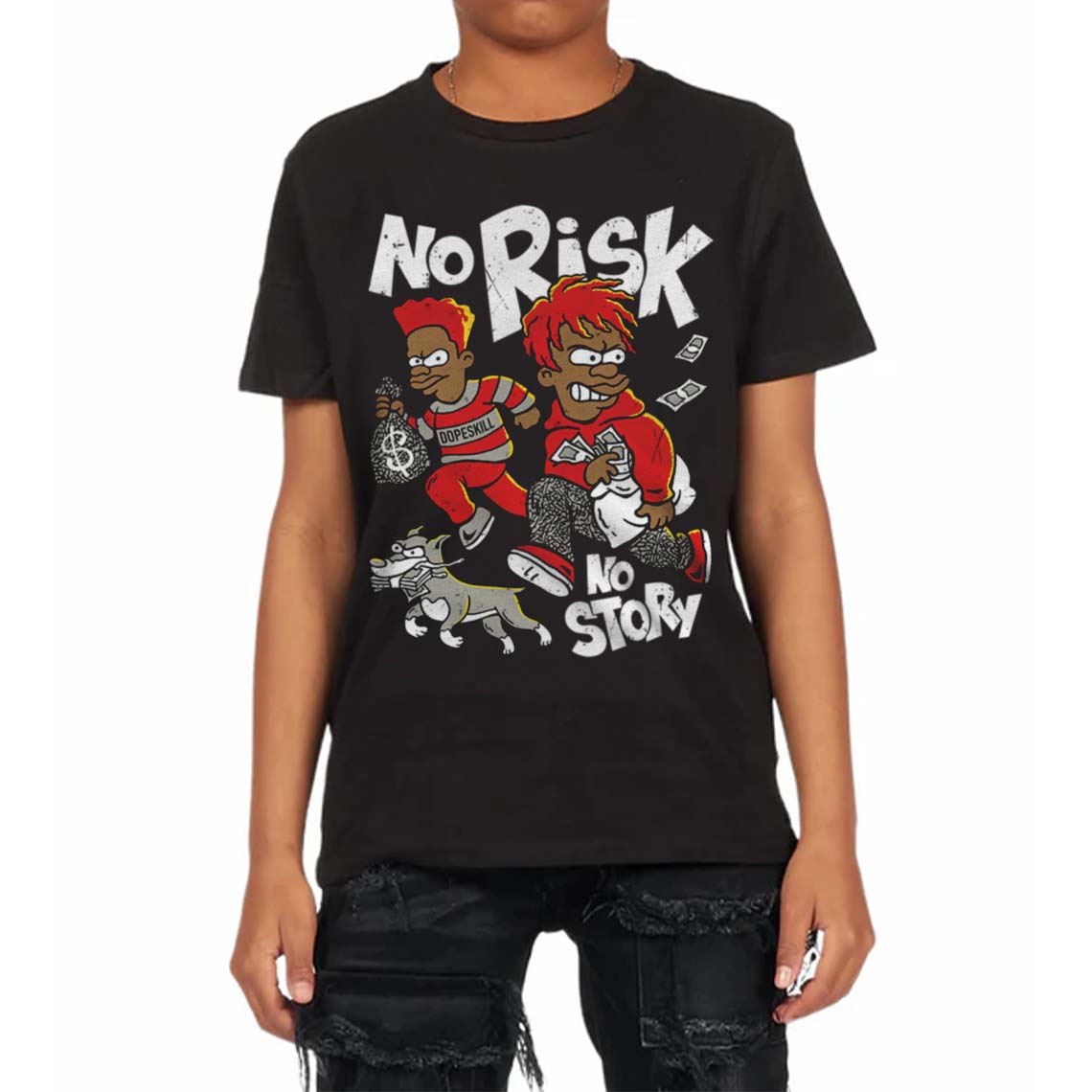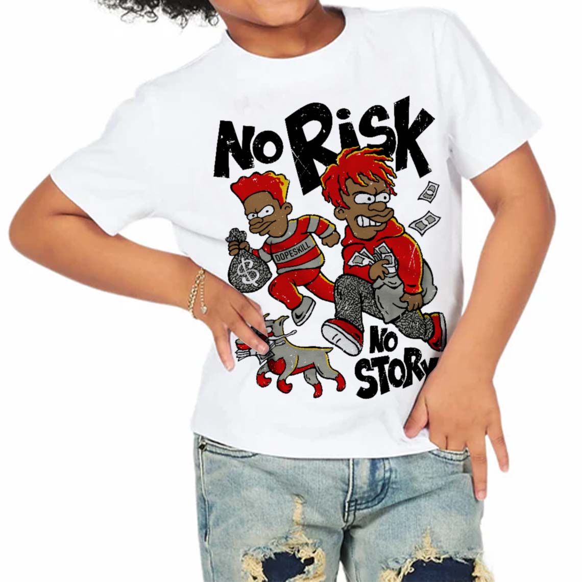 Fire Red 3s DopeSkill Toddler Kids T-shirt No Risk No Story Graphic
