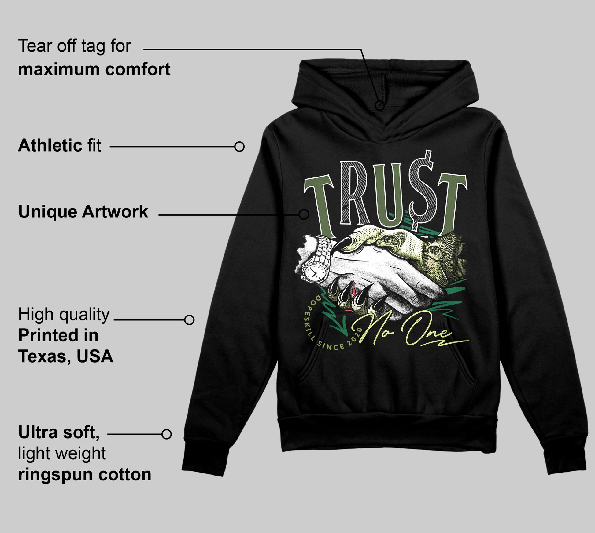 Foamposite One "Pine Green" DopeSkill Hoodie Sweatshirt Trust No One Graphic