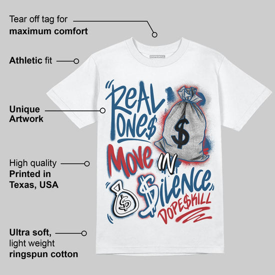 French Blue 12s DopeSkill T-Shirt Real Ones Move In Silence Graphic