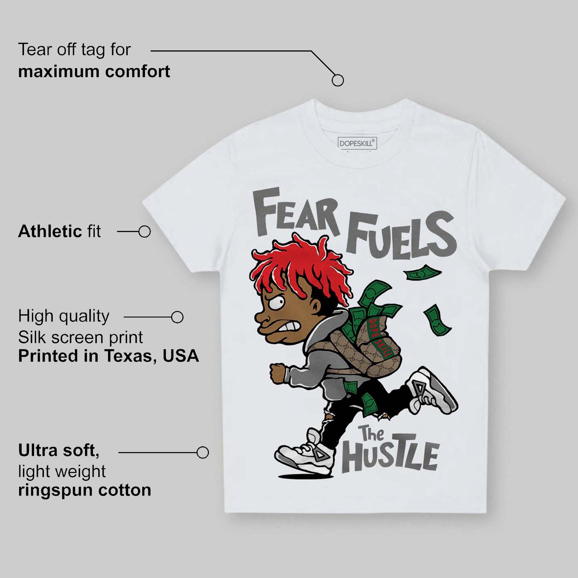 Grey Collection DopeSkill Toddler Kids T-shirt Fear Fuels The Hustle Graphic