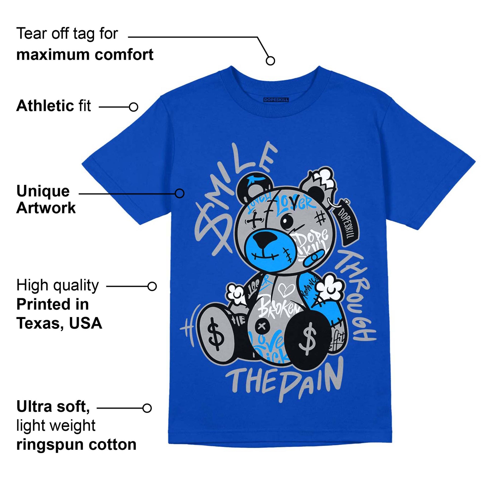 AJ 5 Racer Blue DopeSkill Racer Blue T-shirt Smile Through The Pain Graphic