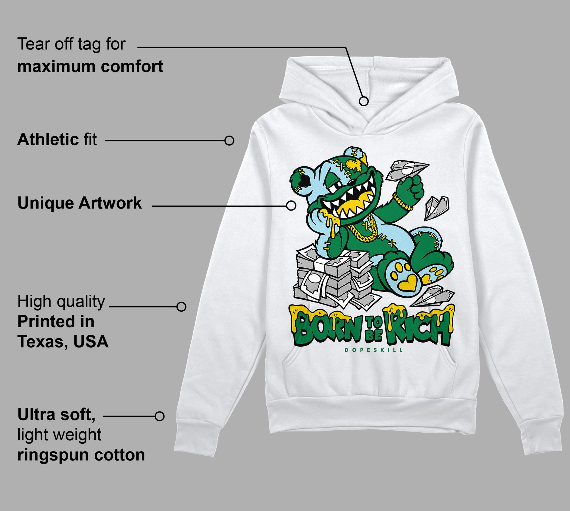 Lucky Green 5s DopeSkill Hoodie Sweatshirt Born To Be Rich Graphic