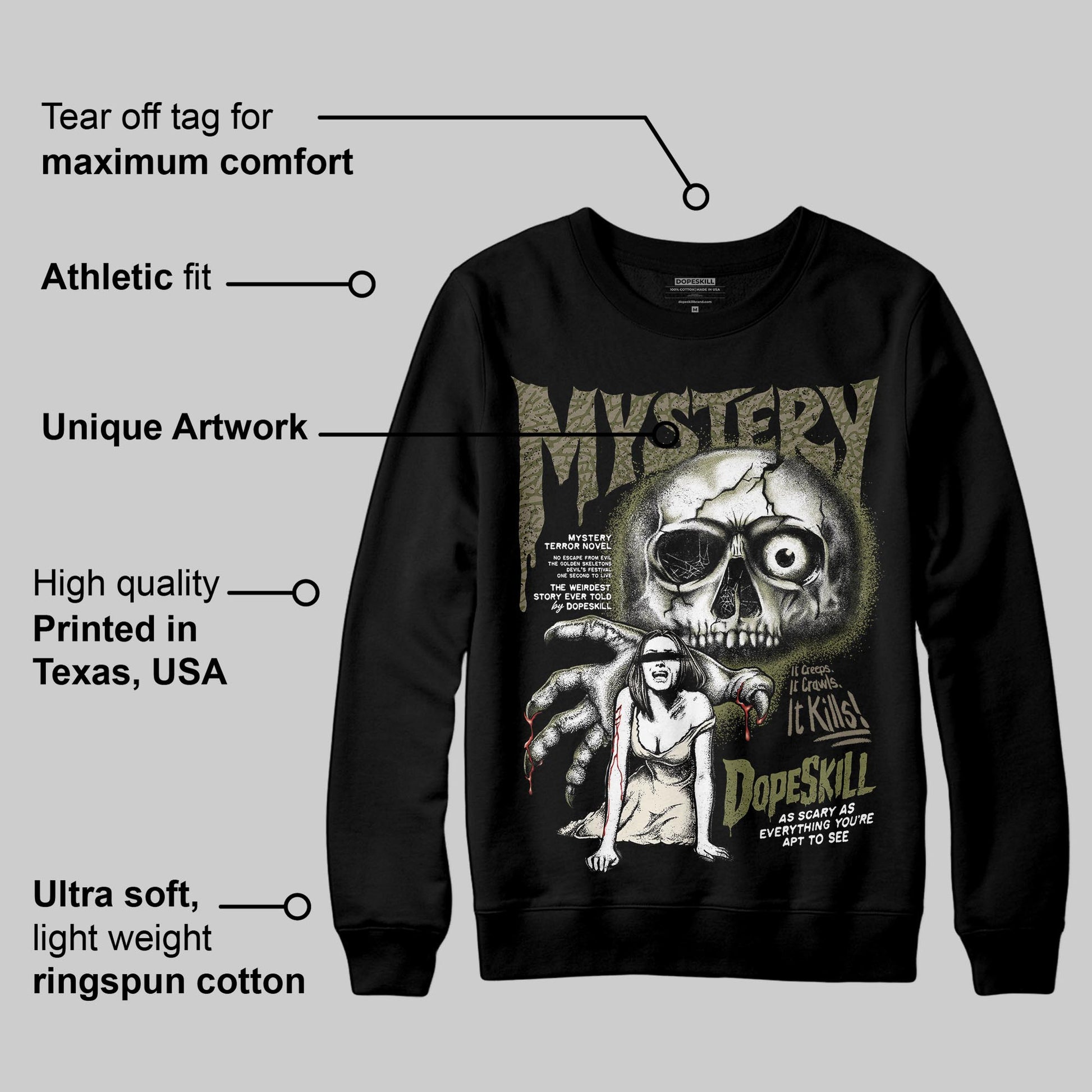 Medium Olive 3s DopeSkill Sweatshirt Mystery Ghostly Grasp Graphic
