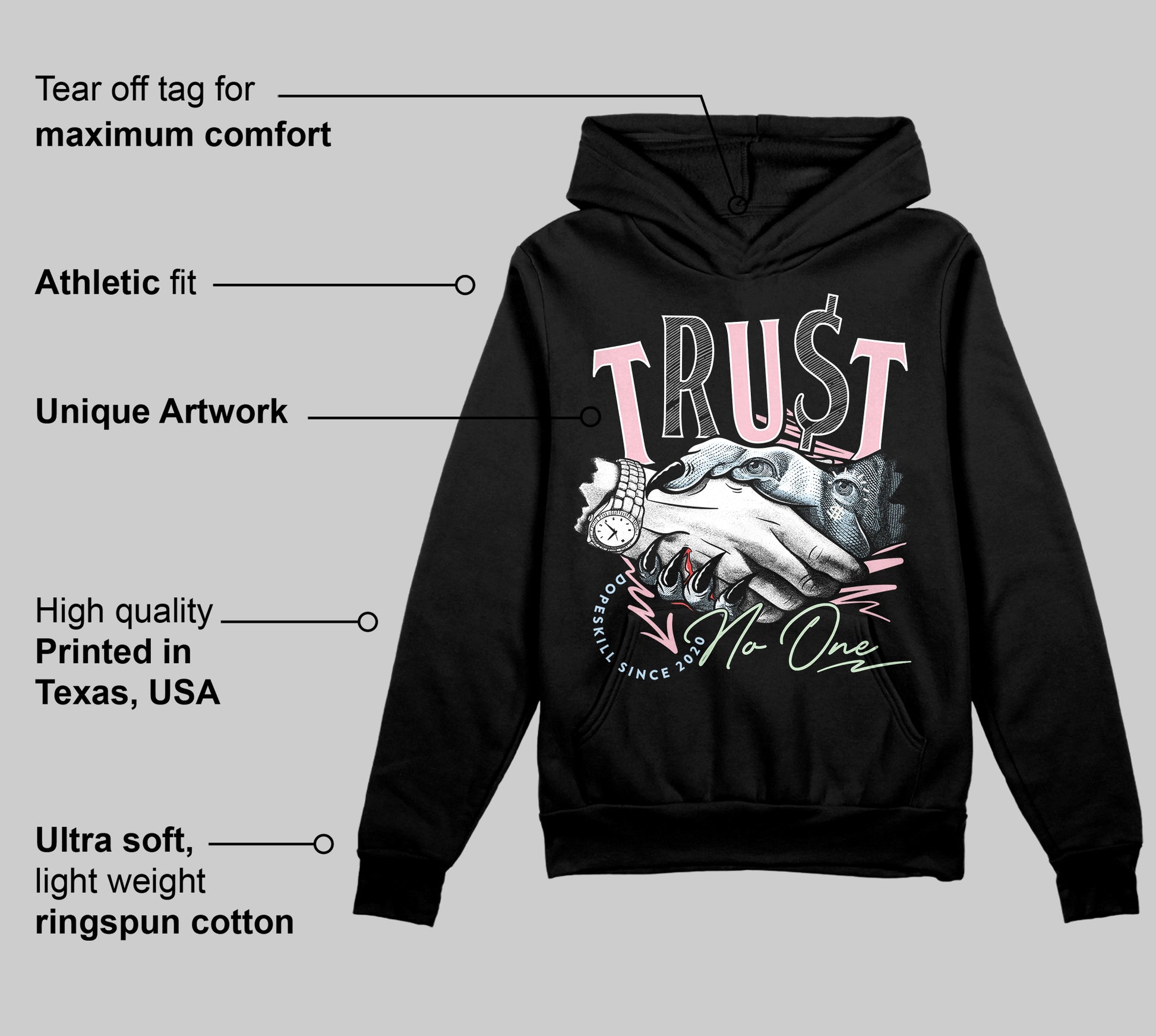 Medium Soft Pink 4s DopeSkill Hoodie Sweatshirt Trust No One Graphic