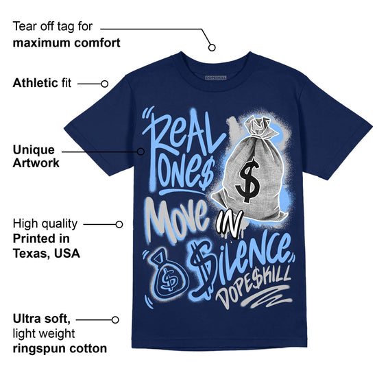 Midnight Navy 5s DopeSkill Navy T-Shirt Real Ones Move In Silence Graphic