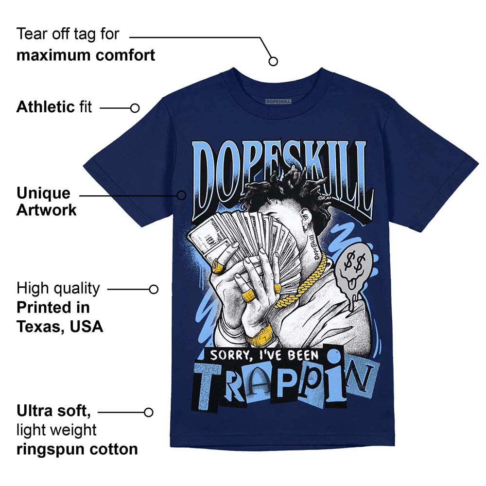 Midnight Navy 5s DopeSkill Navy T-Shirt Sorry I've Been Trappin Graphic