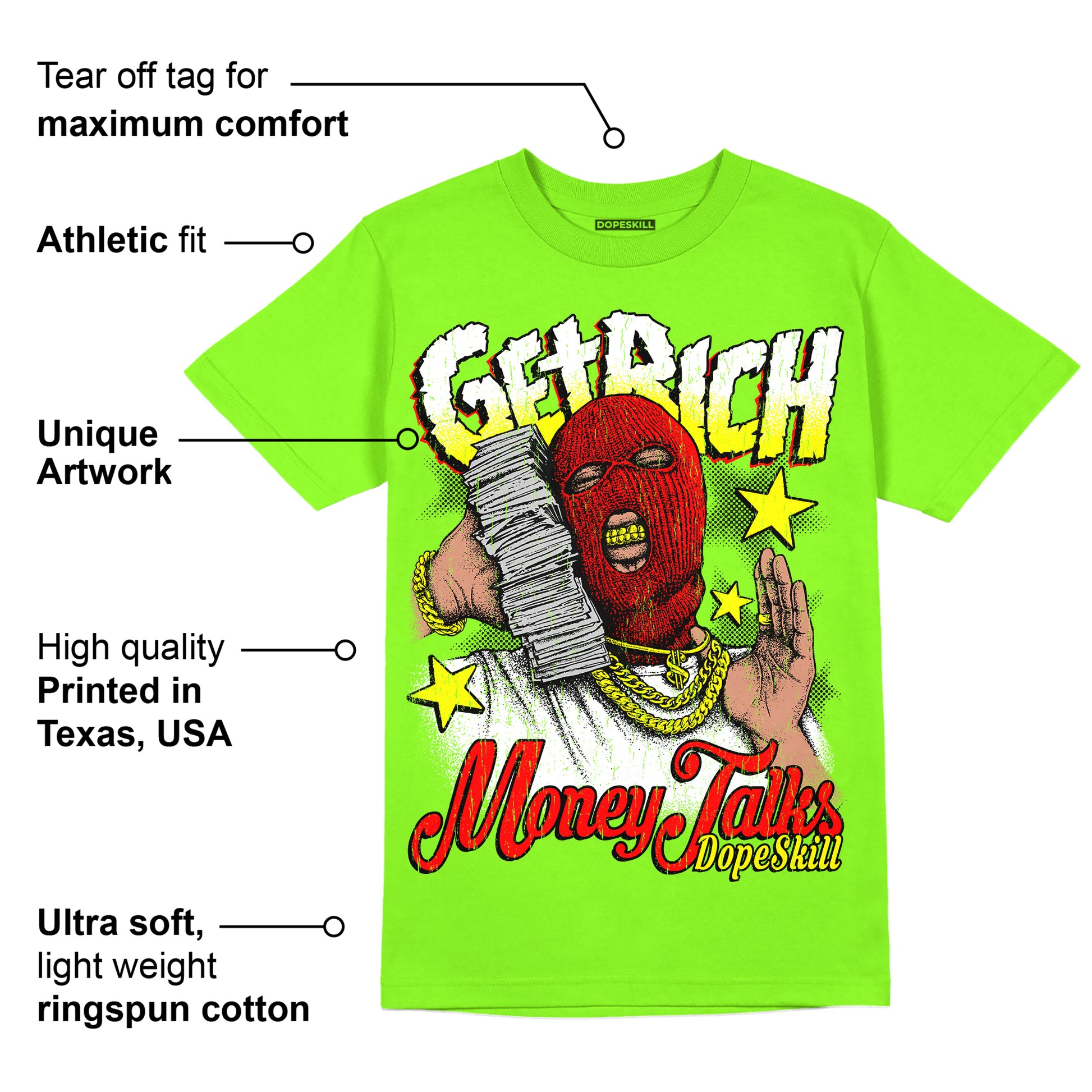 Neon Green Collection DopeSkill Neon Green T-shirt Get Rich Graphic