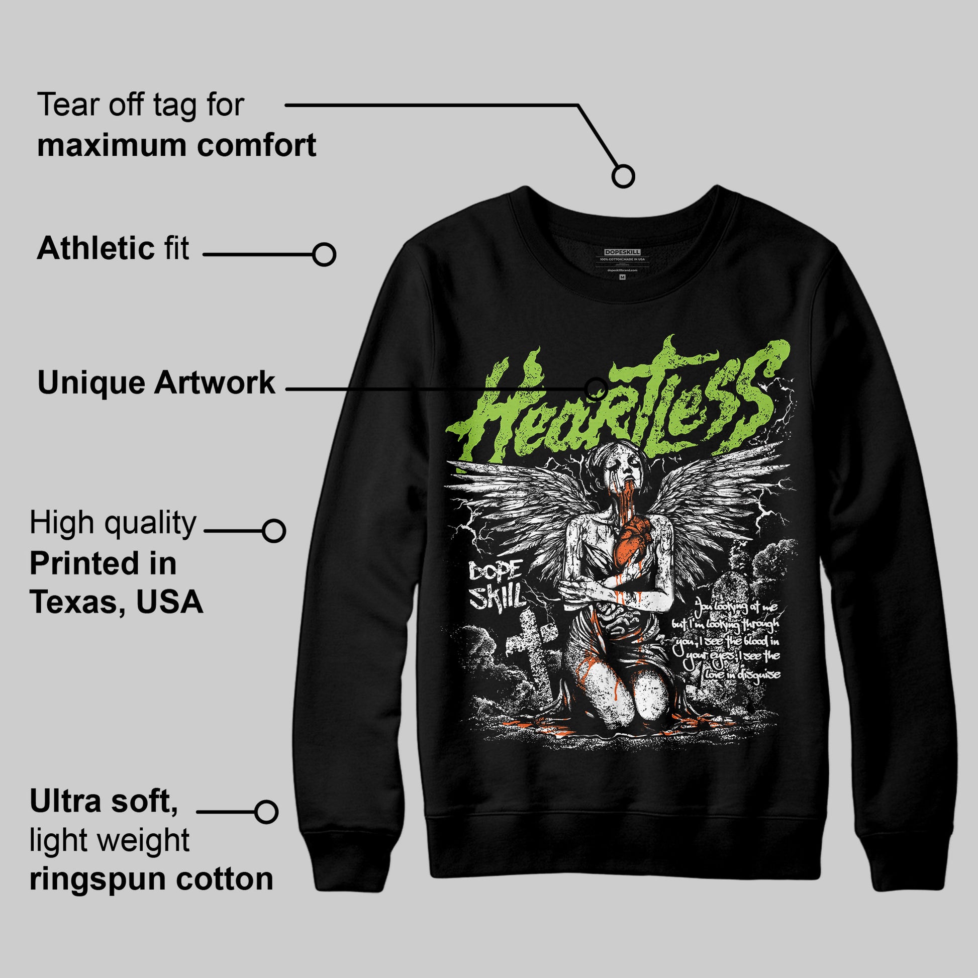 Neon Green Collection DopeSkill Sweatshirt Heartless Graphic