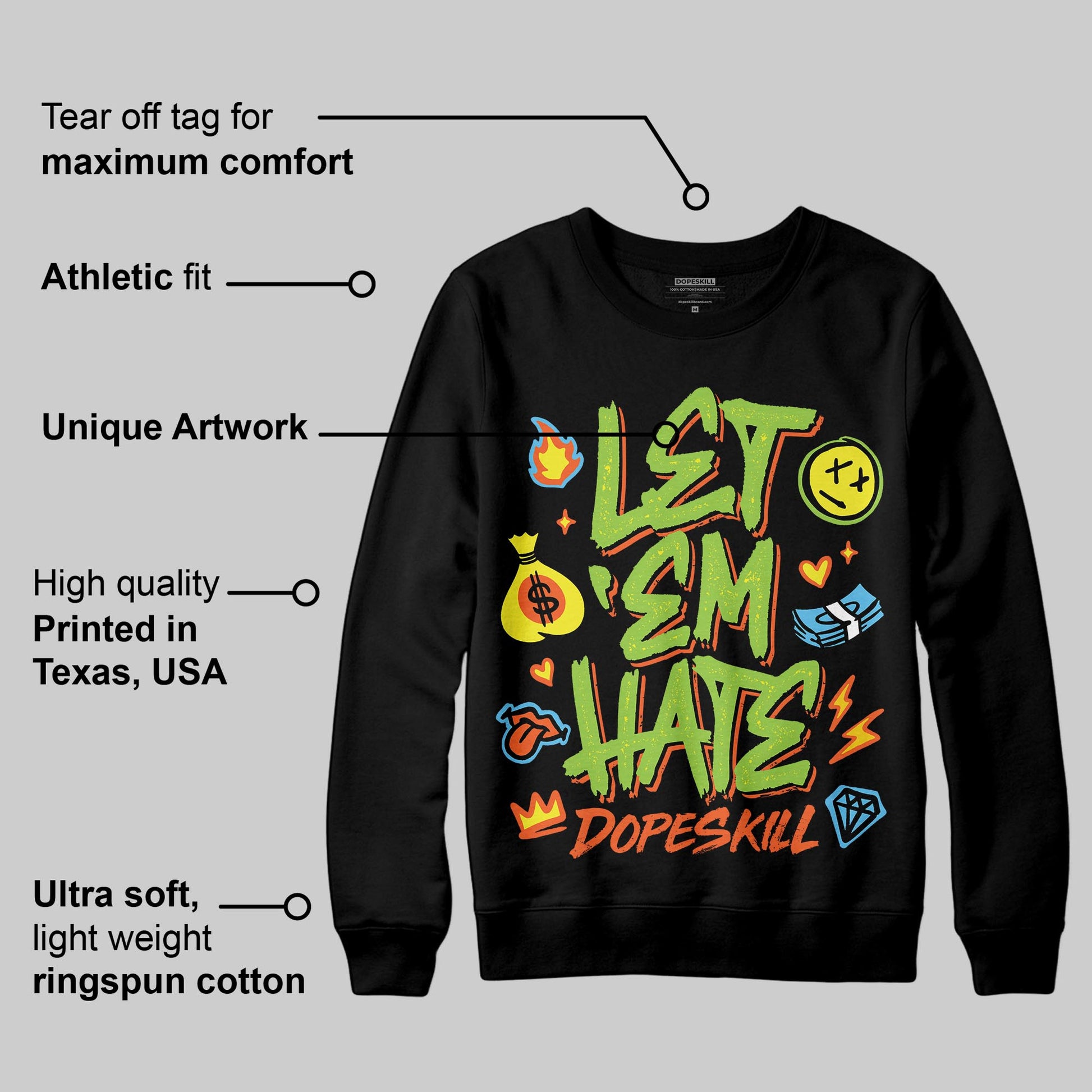 Neon Green Collection DopeSkill Sweatshirt Let 'em Hate Graphic