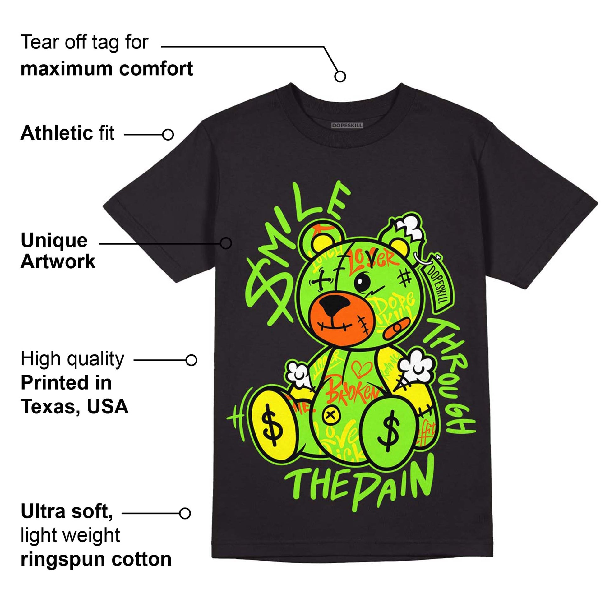 Neon Green Collection DopeSkill T-Shirt Smile Through The Pain Graphic