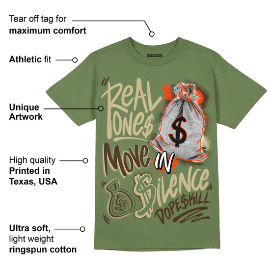 Olive Collection DopeSkill Olive T-shirt Real Ones Move In Silence Graphic