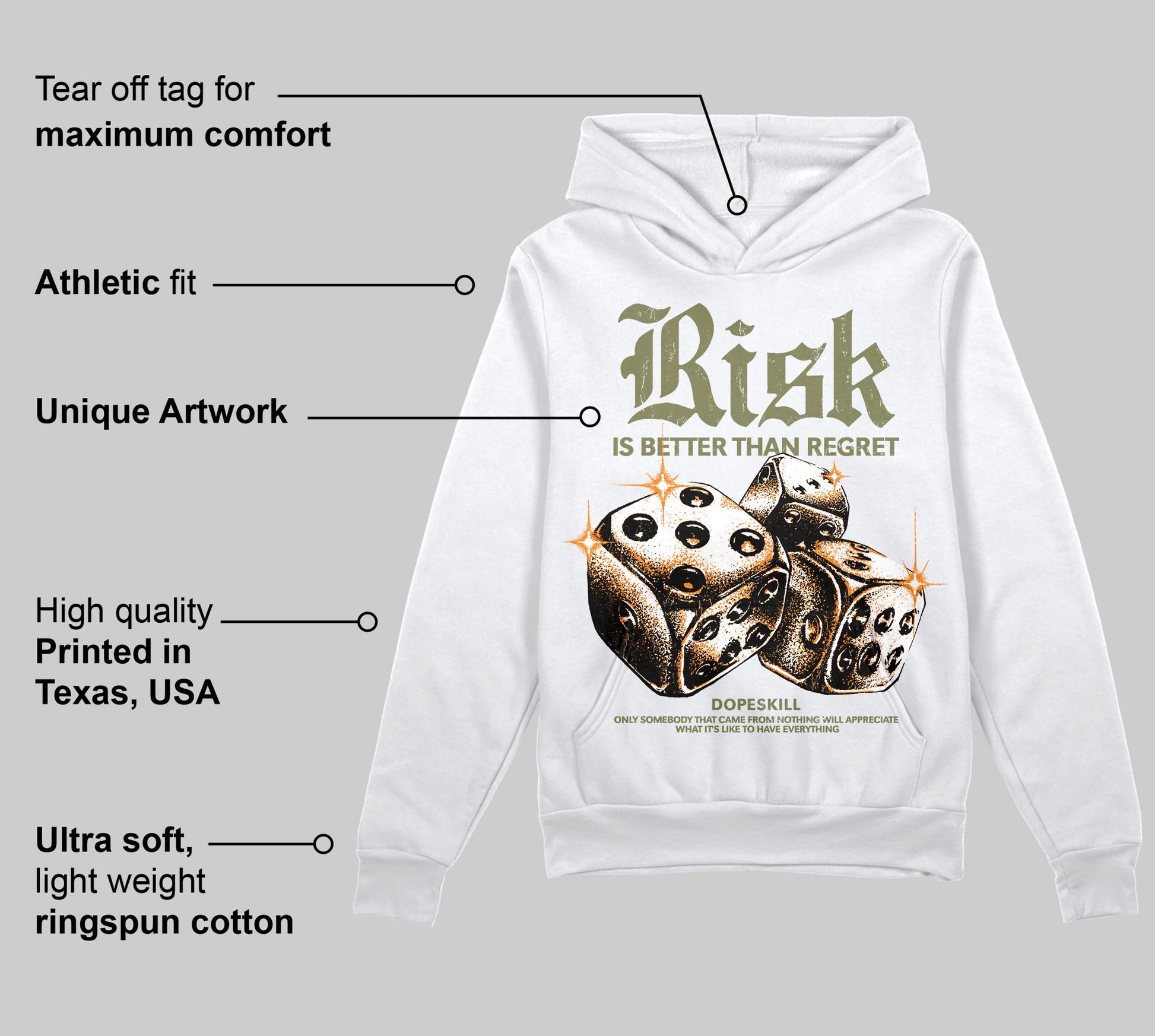 Olive 'Risk Is Better Than Regret' DopeSkill Graphic Hoodie