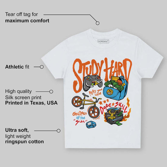 Orange Black White DopeSkill Toddler Kids T-shirt Study Hard Graphic
