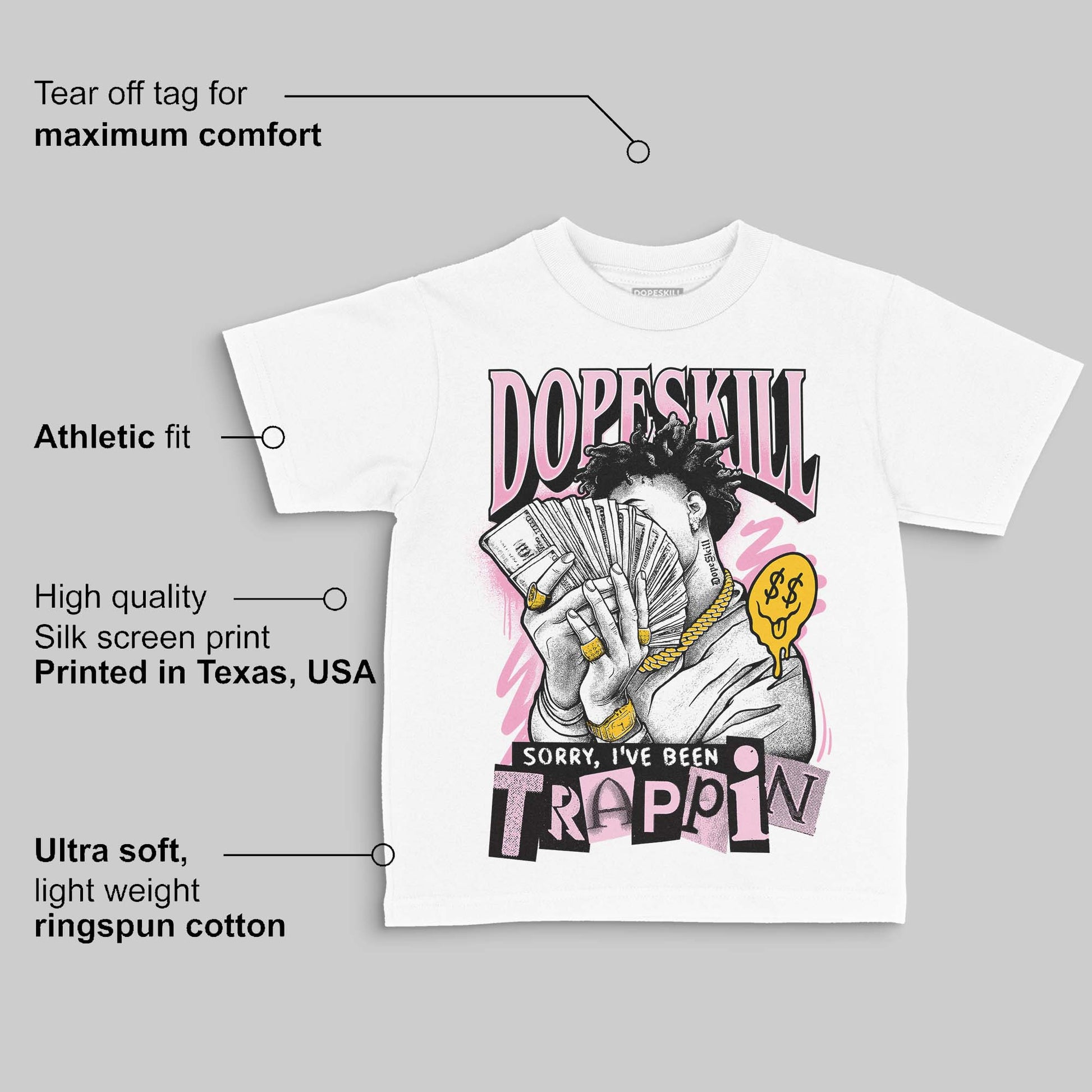 Pearl Pink 12s DopeSkill Toddler Kids T-shirt Sorry I've Been Trappin Graphic