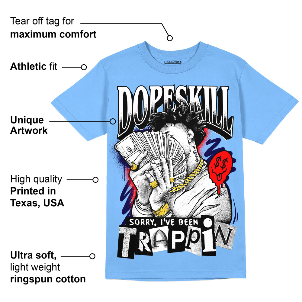 Powder Blue 9s DopeSkill Sky Blue T-shirt Sorry I've Been Trappin Graphic