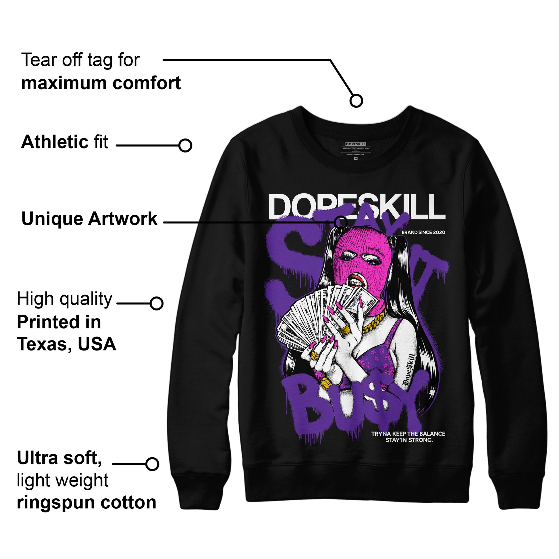 PURPLE Collection DopeSkill Sweatshirt Stay It Busy Graphic