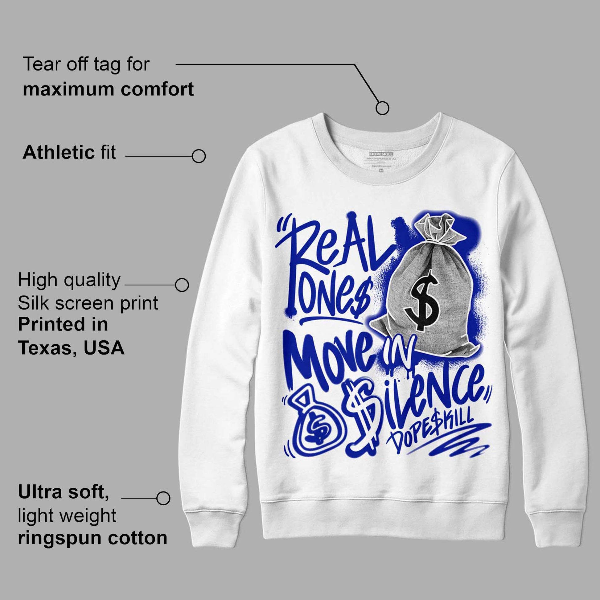 Racer Blue White Dunk Low DopeSkill Sweatshirt Real Ones Move In Silence Graphic
