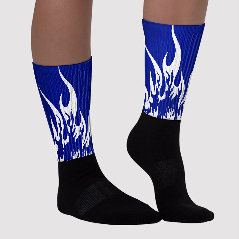 Racer Blue White Dunk Low Sublimated Socks FIRE Graphic