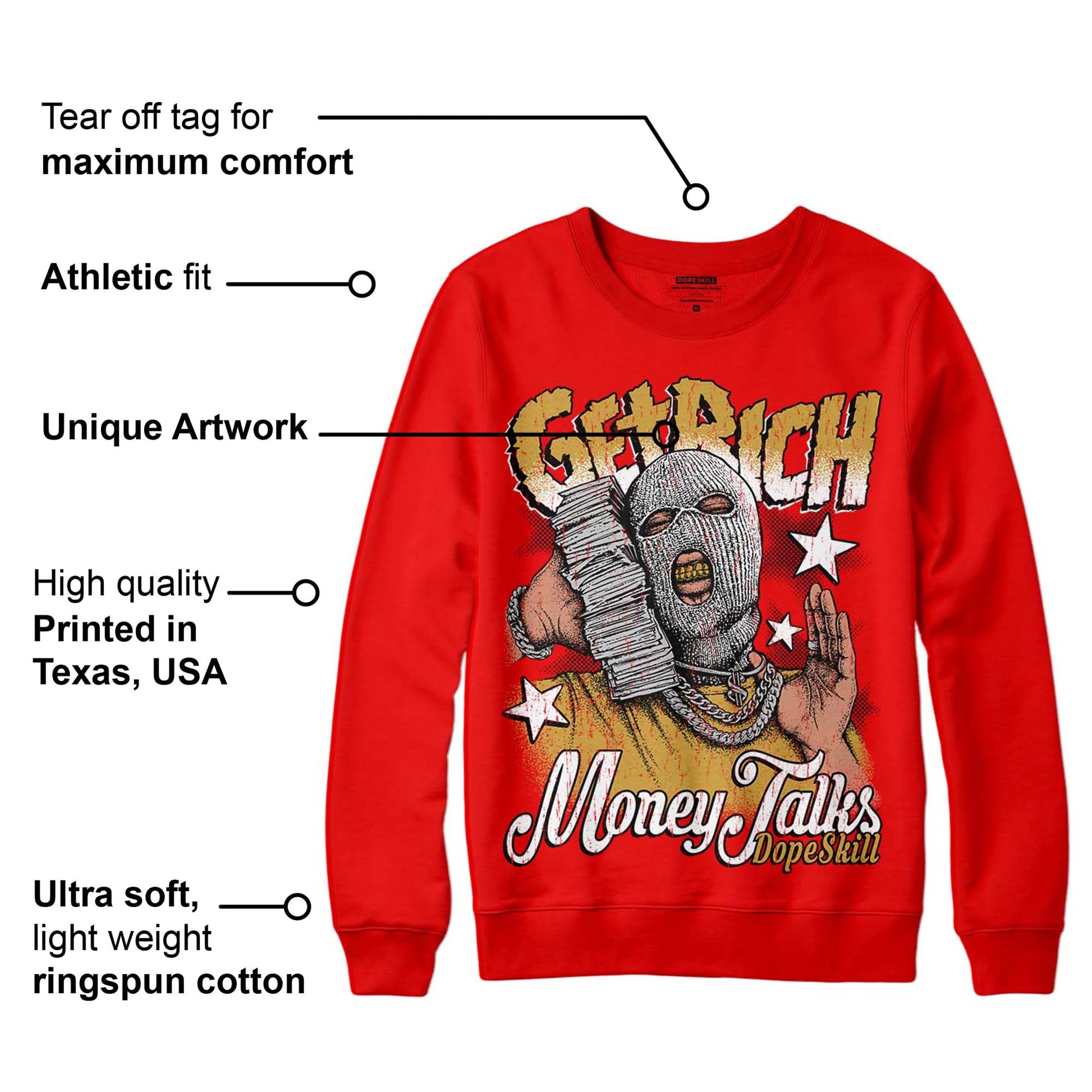 Red Collection DopeSkill Red Sweatshirt Get Rich Graphic