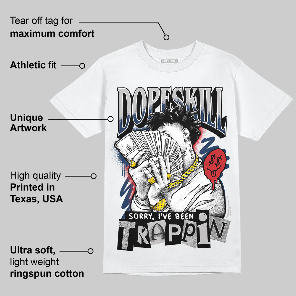 Summit White Navy 4s DopeSkill T-Shirt Sorry I've Been Trappin Graphic