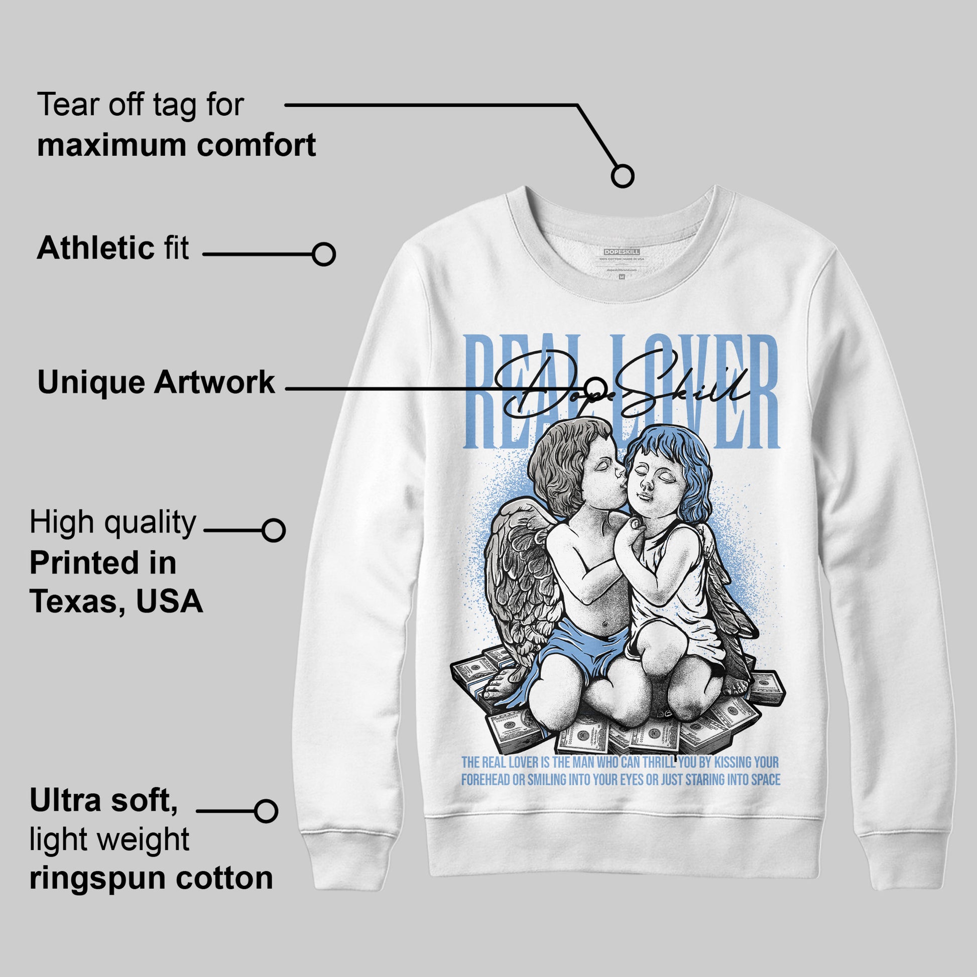 University Blue 5s DopeSkill Sweatshirt Real Lover Graphic