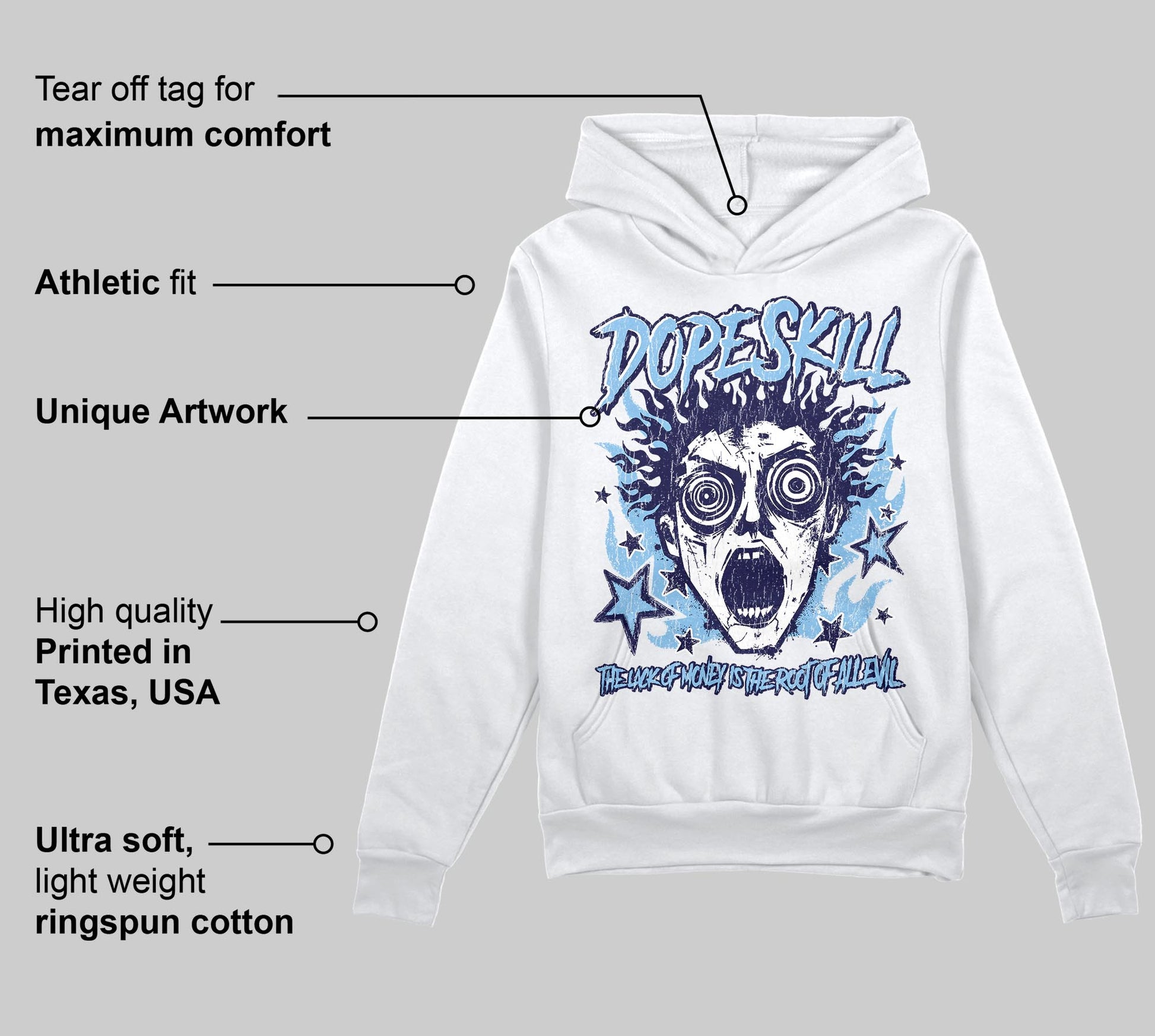 University Blue Collection DopeSkill Hoodie Sweatshirt Root of Evil Graphic