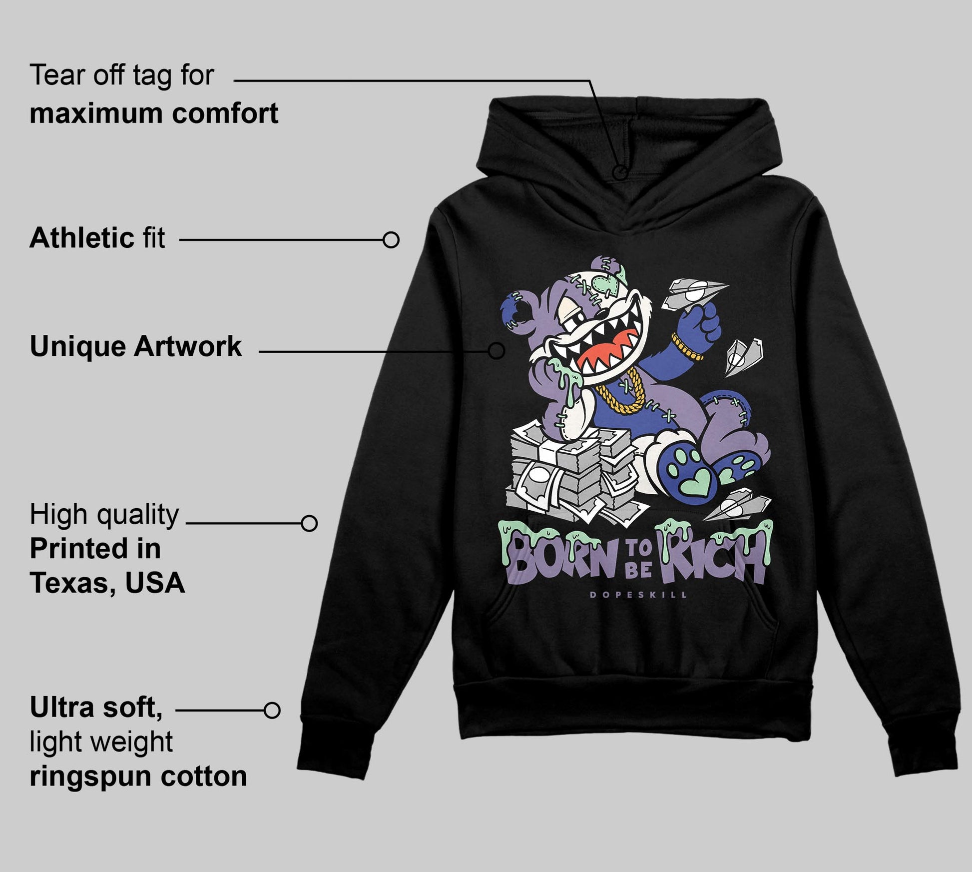 Voodoo Alternate 1s DopeSkill Hoodie Sweatshirt Born To Be Rich Graphic