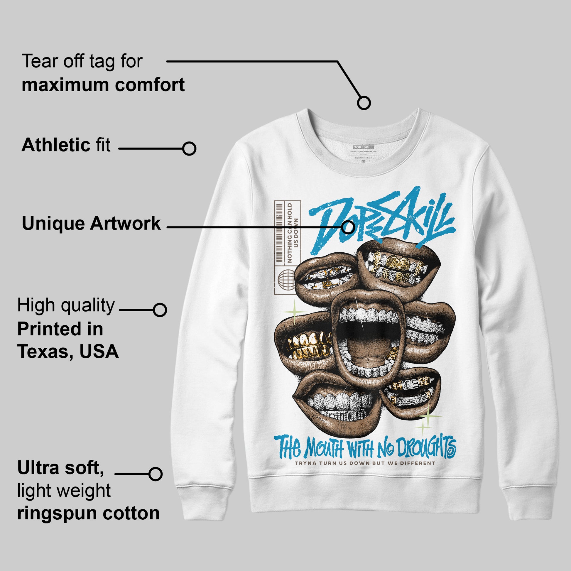 “We Outside” 3s DopeSkill Sweatshirt The Mouth With No Droughts Graphic