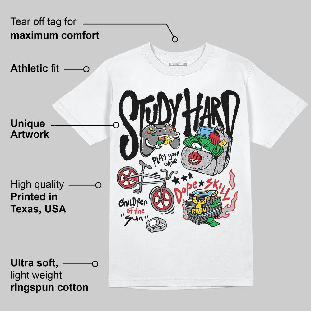 White Cement 4s DopeSkill T-Shirt Study Hard Graphic