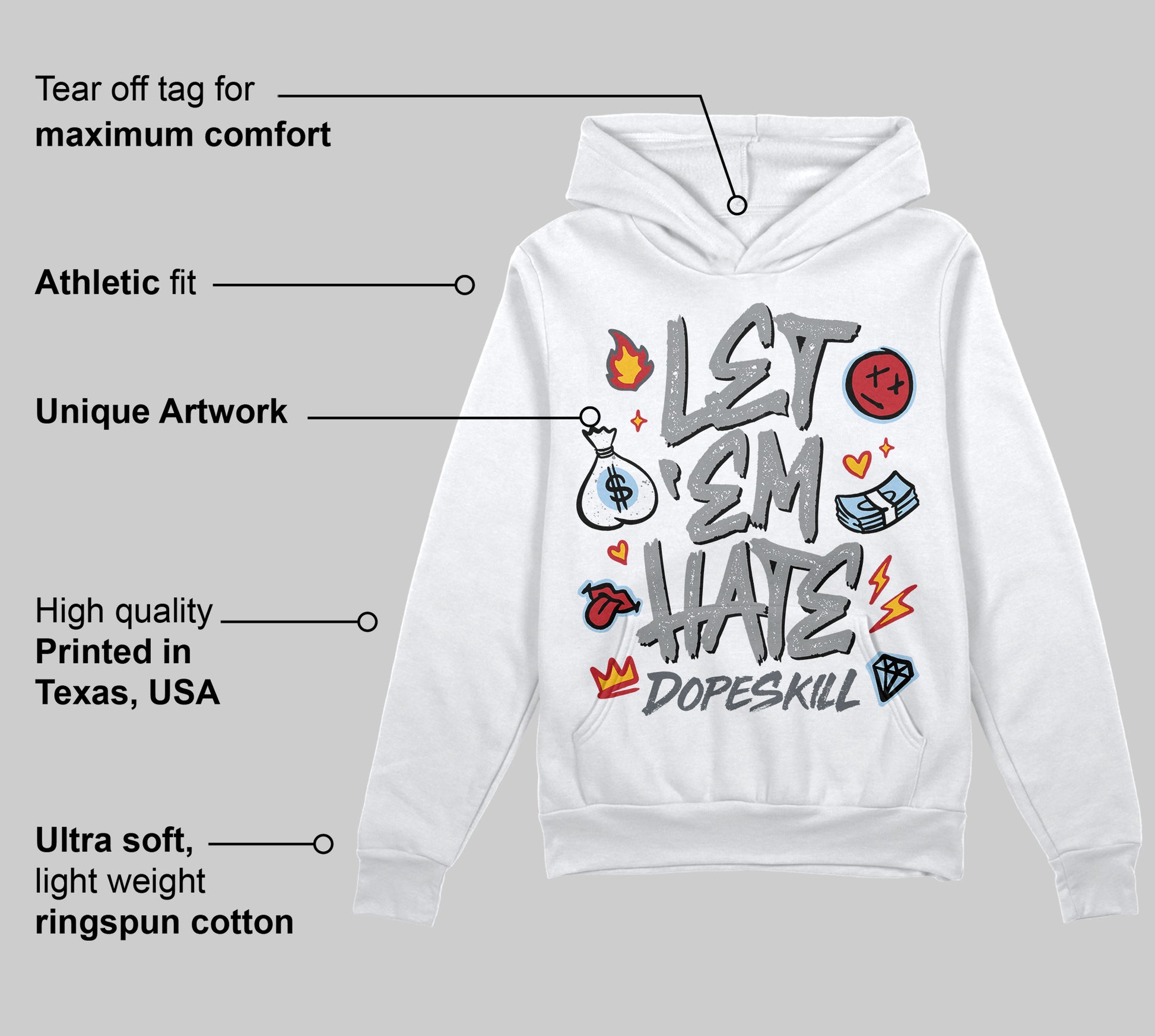Wolf Grey 5s DopeSkill Hoodie Sweatshirt Let 'em Hate Graphic