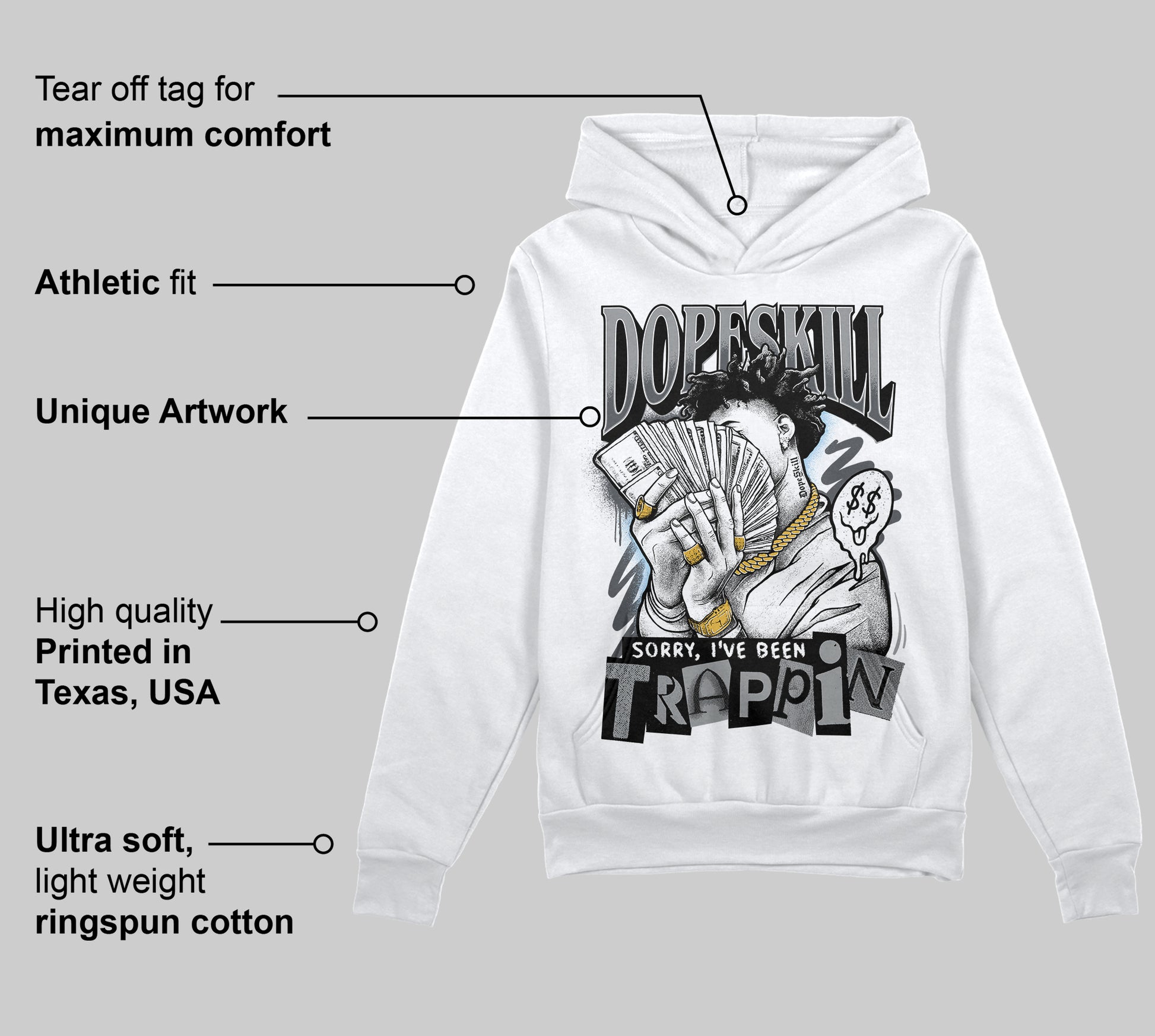 Wolf Grey 5s DopeSkill Hoodie Sweatshirt Sorry I've Been Trappin Graphic