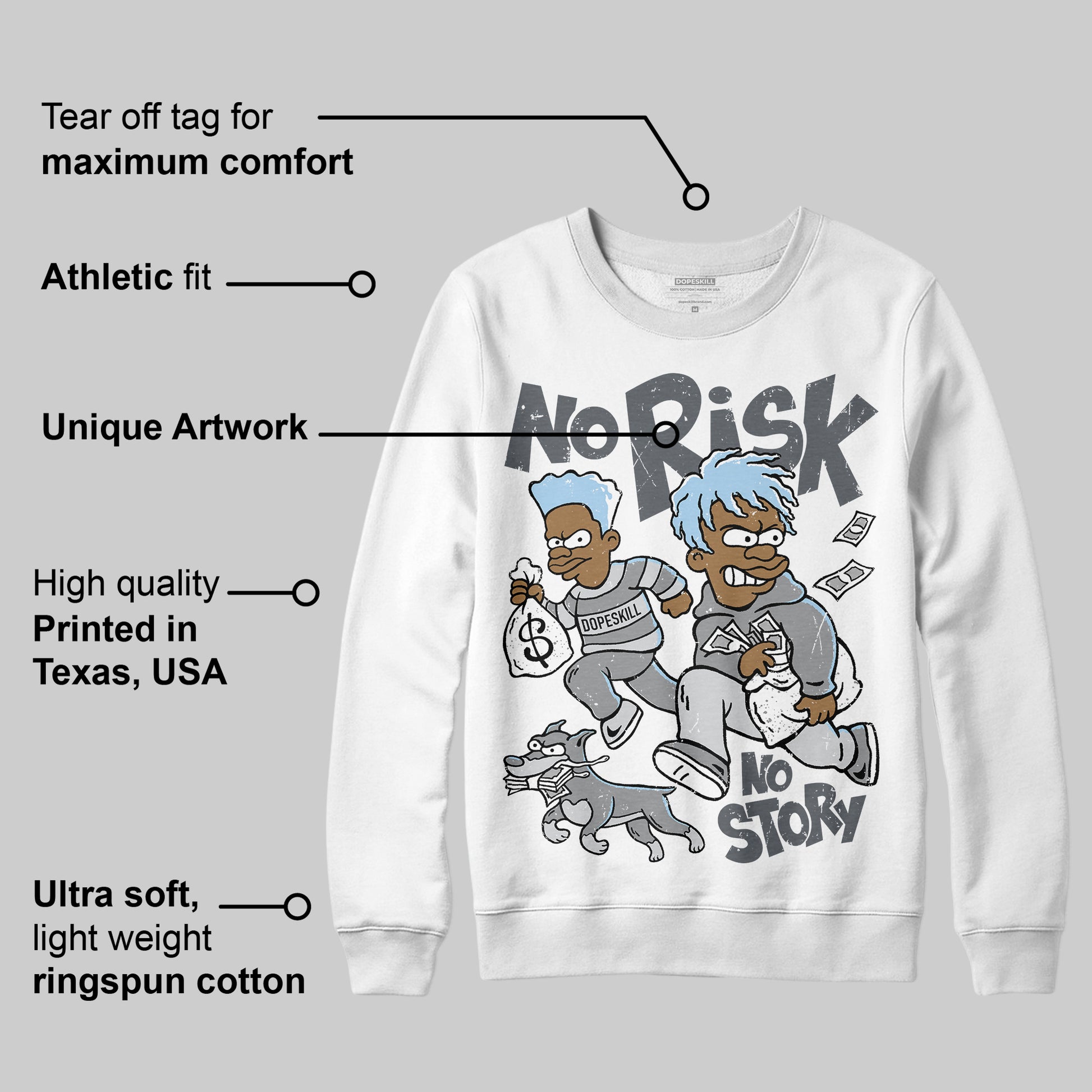Wolf Grey 5s DopeSkill Sweatshirt No Risk No Story Graphic