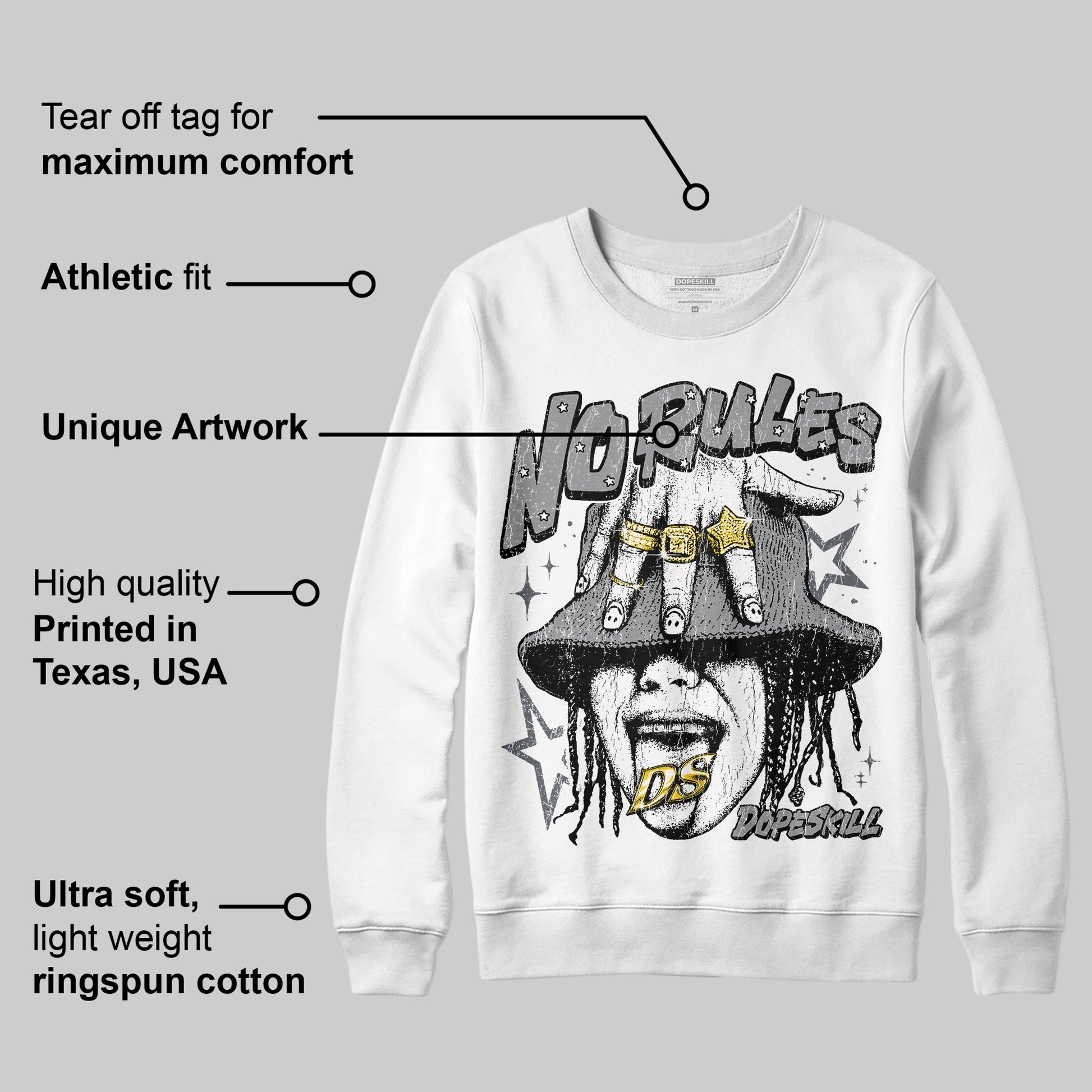 Wolf Grey 5s DopeSkill Sweatshirt No Rules Graphic